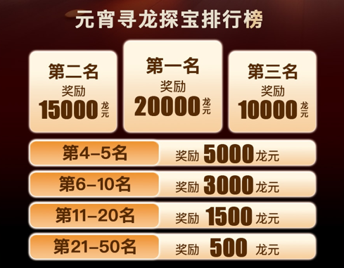 在这个象征团圆与好运的节日里,我们特别推出 「元宵寻龙探宝」系列赛事 ——